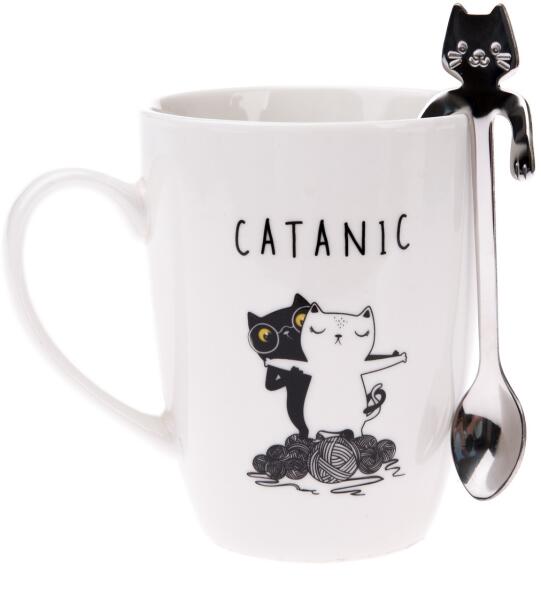 Ez az egyszerű és elegáns bögre tökéletes ajándék minden macskabarátnak. Tartalmaz egy macska alakú kanalat is, amely egyedi párost alkot a bögrével.
