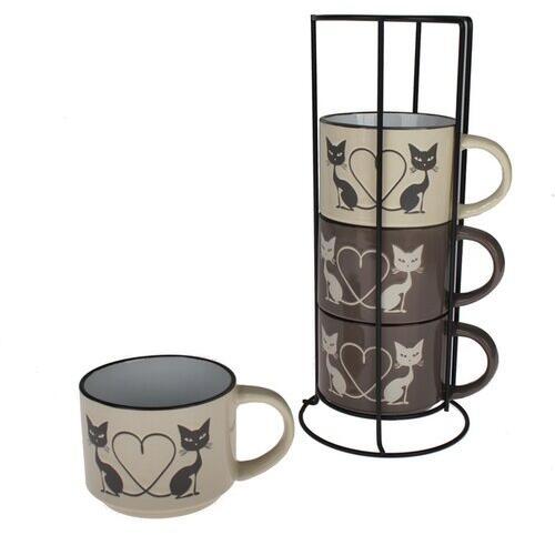 4home Macskák 4 db-os kerámia csésze készlet állványon