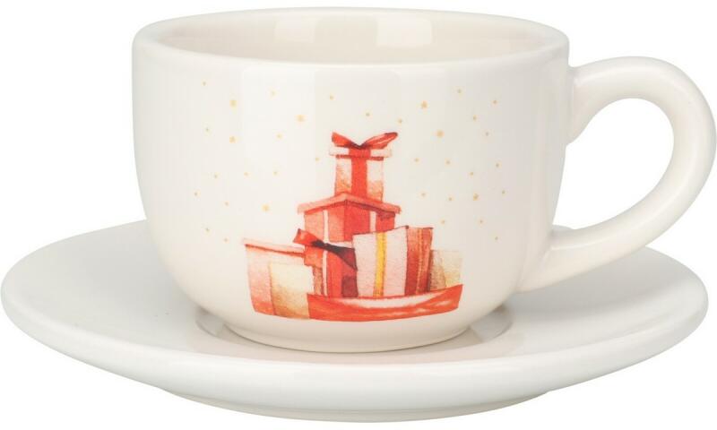 4home Piros ajándék karácsonyi porcelán csésze csészealjjal, 250 ml