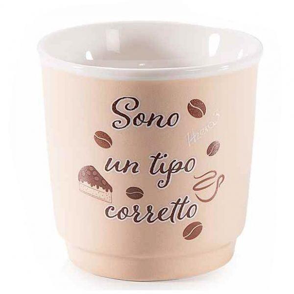 A felirat jelentése: „Én egy rendes fickó vagyok, de az olasz caffè corretto kifejezésre is utal, ami egy „megbolondított (likőrrel ízesített) kávét jelent.