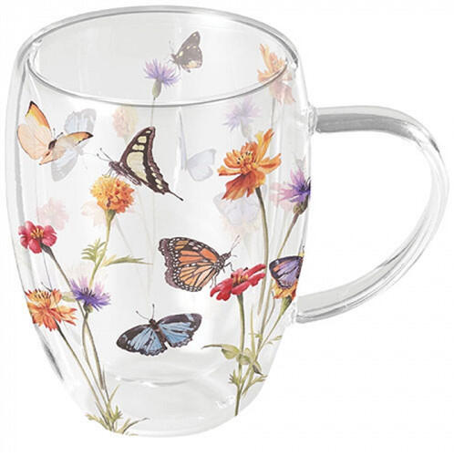 A(z) Butterfly garden white duplafalú borosilicate üvegbögre 0,35L egy stílusos és igényes darab üveg anyagból készült . A termék a(z) Ambiente márka kínálatából származik , eredeti származási helye: Hollandia.