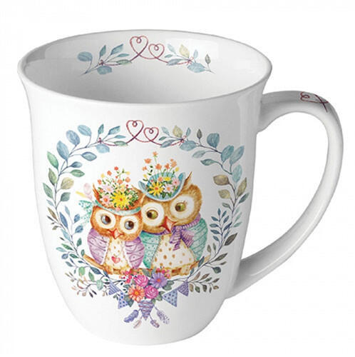 A(z) Owl couple in love porcelánbögre 0,4l egy stílusos és igényes darab porcelán anyagból készült . A termék a(z) Ambiente márka kínálatából származik , eredeti származási helye: Hollandia.