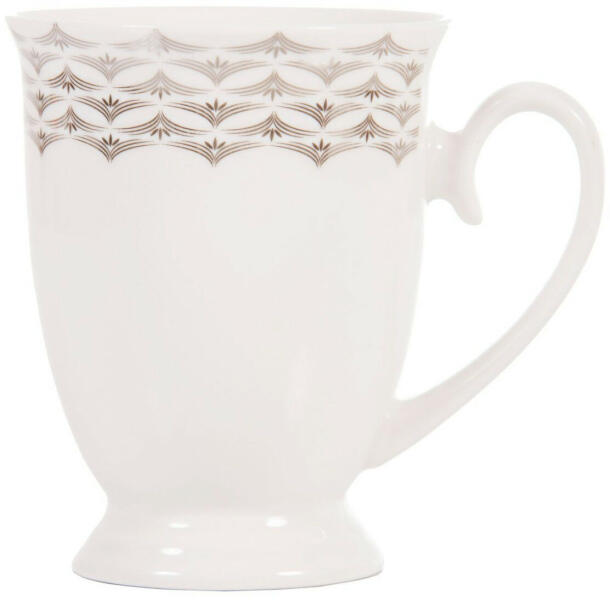 Ambition Diana porcelán bögre: Elegáns teázáshoz és kávézáshoz ☕ Az Ambition Diana porcelán bögre kecses formájával és finom platina díszítésével feldobja a reggeli kávézást vagy az esti teázást. Kiváló minőségű porcelánból készült, kellemes tapintású és tartós. Főbb jellemzők:Elegáns dizájn: A platina díszítés modern és kifinomult megjelenést kölcsönöz. 300 ml űrtartalom: Tökéletes méret egy finom kávéhoz vagy teához. Prémium porcelán: Tartós és könnyen tisztítható. Kényelmes fogás: A bögre formája kényelmes fogást biztosít. Élvezze kedvenc italait stílusosan ezzel a gyönyörű bögrével!