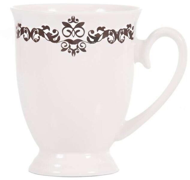 Ambition Diana porcelán bögre: Elegáns teázáshoz és kávézáshoz ☕ Az Ambition Diana porcelán bögre kecses formájával és finom dizájnjával feldobja a reggeli kávézást vagy az esti teázást. A 300 ml-es űrtartalom tökéletes egy nagyobb adag italhoz. Főbb jellemzők:Elegáns dizájn: A platina színű díszítéssel ellátott bögre stílusos megjelenést kölcsönöz az asztalnak. Kényelmes fogás: A bögre ergonomikus formája biztosítja a kényelmes fogást. Minőségi porcelán: Tartós és mosogatógépben mosható. 300 ml űrtartalom: Tökéletes egy nagyobb adag tea vagy kávé számára. Élvezze kedvenc italait stílusosan ezzel a gyönyörű porcelán bögrével!