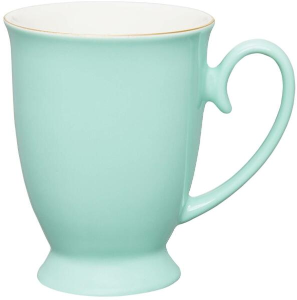 Ambition Flores Menta Porcelán Bögre - Elegancia és Kényelem ☕ A finom menta színű, klasszikus formájú Ambition Flores bögre tökéletes választás a mindennapi kávézáshoz vagy teázáshoz. Az elegáns talp és a finom arany szegély különleges megjelenést kölcsönöz neki, így nem csak praktikus, de stílusos kiegészítője is lehet otthonodnak. Főbb jellemzők: Űrtartalom: 300 ml (felhasználható 280 ml) Szín: Menta Anyag: Vékony, de strapabíró porcelán Dizájn: Elegáns talp és arany szegély Miért válaszd a Flores bögrét?Kényelmes használat: Ergonomikus fogantyújának köszönhetően tökéletesen illeszkedik a kézbe, így a használat során teljes kényelmet biztosít. Stílusos megjelenés: Pasztell színei könnyedséget és harmóniát kölcsönöznek a belső térnek. Tökéletes ajándékötlet: A Flores bögre ideális ajándék a stílusos étkészletek szerelmeseinek. Mindennapi elegancia: A vékony, mégis strapabíró porcelánból készült bögre tökéletes mindennapi használatra, de különleges alkalmakra is. Élvezd a kávézást vagy teázást ebben a gyönyörű és praktikus bögrében! ?
