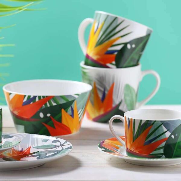 Ambition Paradise Csészealj: Élénkítsd a reggeleidet trópusi hangulattal! ? Az Ambition Paradise kollekció csészealja vidám dzsungel mintájával és élénk színeivel azonnal nyári hangulatot varázsol a konyhába. Kiváló minőségű porcelánból készült, így tartós és elegáns darab a mindennapokban. Mosogatógépben is mosható, így a takarítás is gyerekjáték! ✨ Főbb jellemzők:Élénk, trópusi dzsungel minta: Vidám és frissítő megjelenés. Kiváló minőségű porcelán: Tartós és elegáns. Mosogatógépben mosható: Könnyű tisztítás. Tökéletesen illeszkedik: A 69050-es kódú csészehez. 15,5 cm átmérő: Ideális méret a kávé- vagy teáscsészékhez. Hozd el a trópusokat az otthonodba ezzel a gyönyörű csészealjjal!
