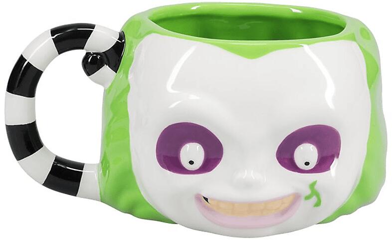 Beetlejuice arc formájú bögre: hivatalos engedéllyel rendelkező, extra méretű 3D kerámia bögre. Élvezd a reggeli kávéd a szellem társaságában a Beetlejuice arc formájú bögrével! A kerámia bögre az ikonikus poltergeist fejéhez hasonló, a jellegzetes, ragyogó zöld hajával és feltűnő fekete-fehér csíkos fogantyújával. Mosogatógépben vagy mikrohullámú sütőben nem használható. Űrtartalom: 650 ml Anyag: kerámia
