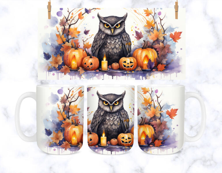 Halloweeni, őszi mintás baglyos bögre