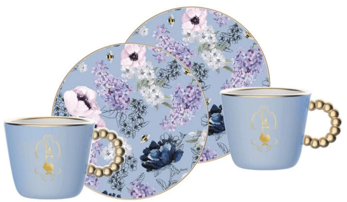A Bialetti Bridgerton csészekészlet különleges kiadás, amelyet a Netflix népszerű sorozata inspirált. A 2 db porcelán csésze alátéttel elegáns kék színvilágban, arany díszítéssel készült, hogy stílusos élményt nyújtson a kávézás során.