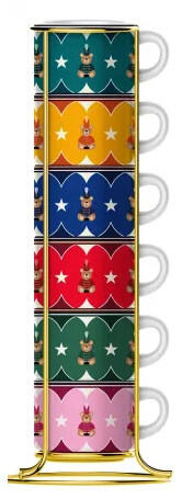 A 60 ml-es porcelán eszpresszó csészék játékos, több színben megjelenő ünnepi mintával készültek, melyeket elegáns rozsdamentes acél állvány egészít ki – így a szett könnyen tárolható, dekorációként is megállja a helyét. Ünnepi díszcsomagolásban érkezik, ezért kiváló ajándék kávérajongóknak, gyűjtőknek vagy bárkinek, aki szereti a különleges, limitált kollekciókat.