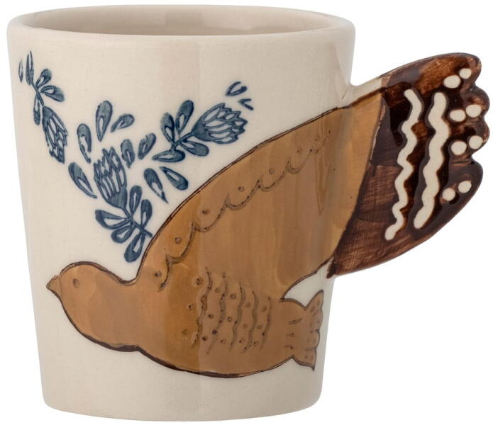 Legyen elvarázsolva ennek a Bloomingville Mini kőedény bögrének az egyedi dizájnjától. A bögrét egy 3D hatású madár elem uralja, amely egyben a fogantyúként is szolgál. Az egyes bögrék kézi festése finom dizájnváltozatokat is létrehoz. Biztos lehet benne, hogy egy igazán egyedi darabot tarthat otthonában.