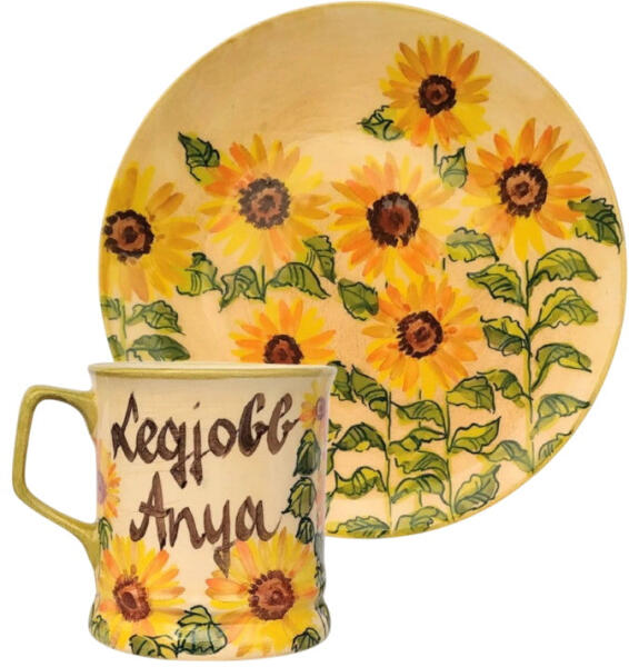 BögreManufaktúra Feliratos neves Napraforgó bögre és reggeliző tányér