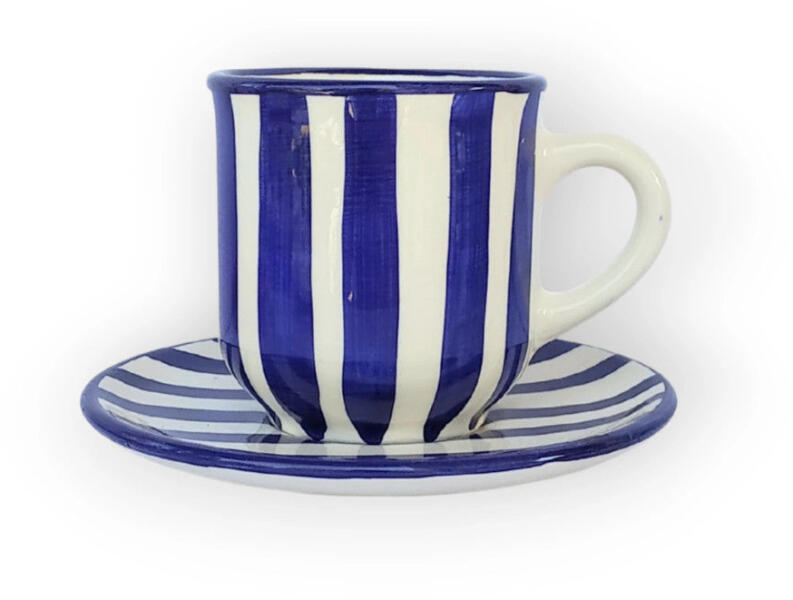 BögreManufaktúra Kék csíkos kávés bögre és kistányér