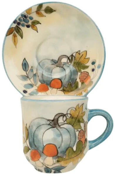 BögreManufaktúra kék tökös kávés bögre és kistányér