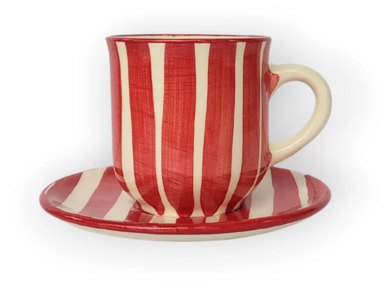 BögreManufaktúra Piros csíkos kávés bögre és kistányér