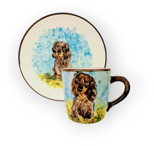 BögreManufaktúra Tacskó hosszú szőrű bögre és reggeliző tányér