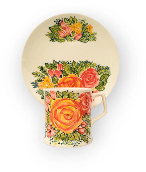 BögreManufaktúra Virágos bögre és reggeliző tányér FL001 - rózsa minta