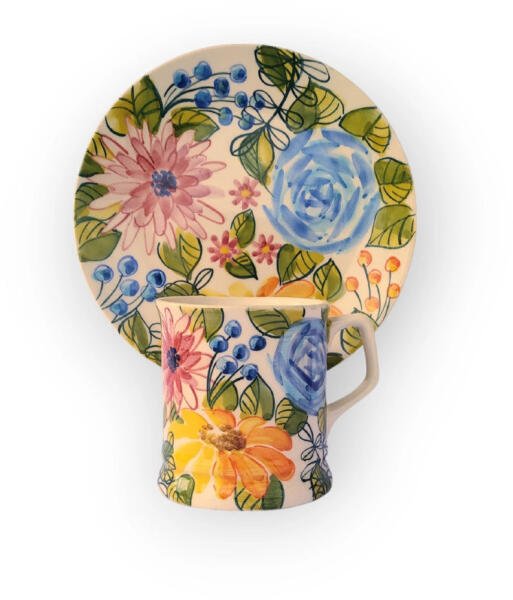 BögreManufaktúra Virágos bögre és reggeliző tányér FL003 - kék rózsa