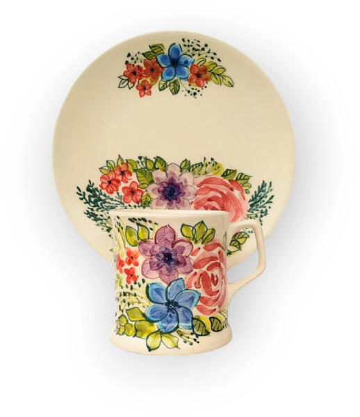 BögreManufaktúra Virágos bögre és reggeliző tányér FL004 - árvácska