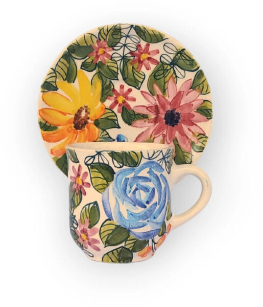 BögreManufaktúra Virágos kávés bögre és kistányér FL003 - kék rózsa