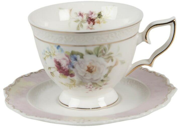 Clayre & Eef Viktoriánus rózsa mintás porcelán teás csésze - 200 ml