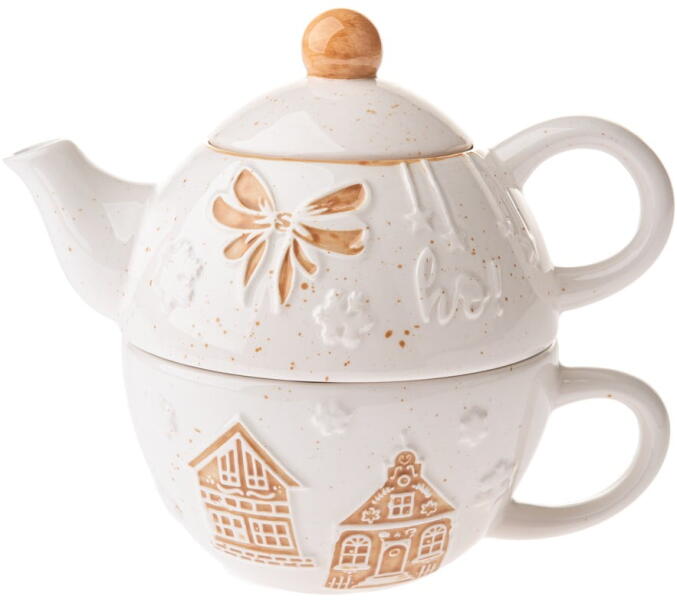 Fehér kerámia teázó szett karácsonyi mintával Christmas cottage – Dakls