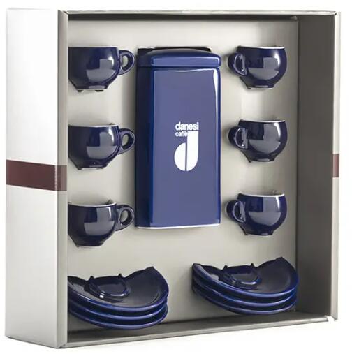 Danesi La Forma ajándékcsomag - Dark's Cassette Kava 250g + 6 eszpresszó csésze és 6 csészealj - kék