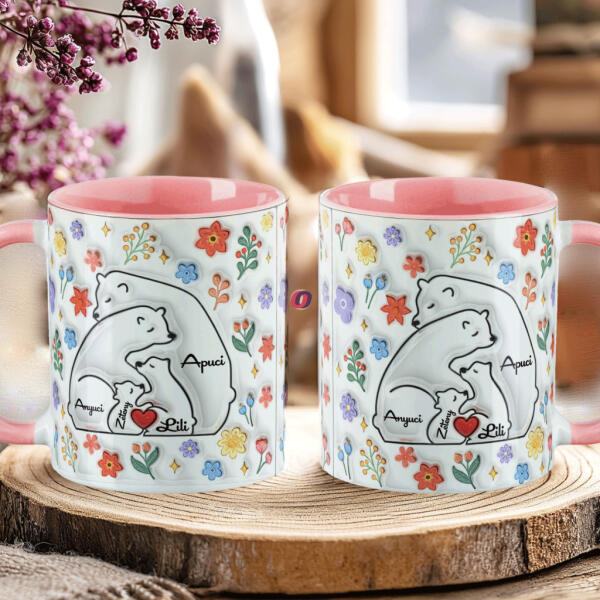 Deconline Crafts Ajándék bögre "Medve család, Max 5 gyerek" Személyre szabható, rózsaszín, kerámia (DO133019-PINK-MUG)