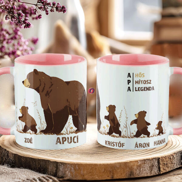 • Egyedi feliratos Apák napi bögre "Apamaci bocsokkal, Max 5 gyerek"