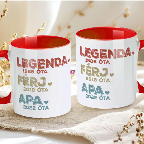 Fedezd fel a legújbb Apák napi kellékeket a Deconline. hu Apák napi kollekciójában! Apák napi bögre "Legenda Apa" egyedi névvel, piros, kerámia kedvező áron, villámgyors szállítással!