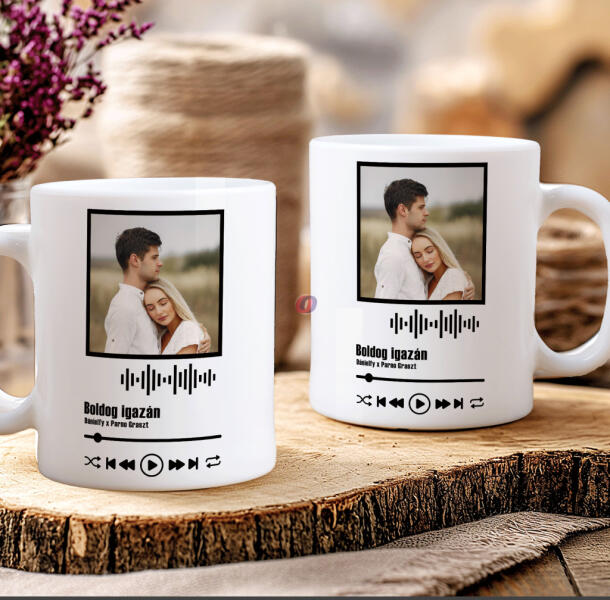 Deconline Crafts Egyedi Ajándék bögre kedvenc dal - személyre szabható fényképpel és dallal 300 ml fehér (DO133031-CERAMIC-MUG)