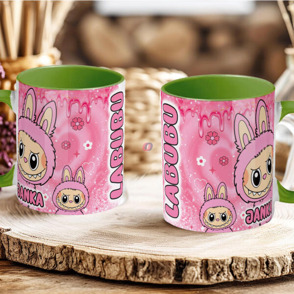 Deconline Crafts Egyedi neves Rózsaszín Labubu bögre személyre szabható zöld (DO69363-GREEN-MUG)