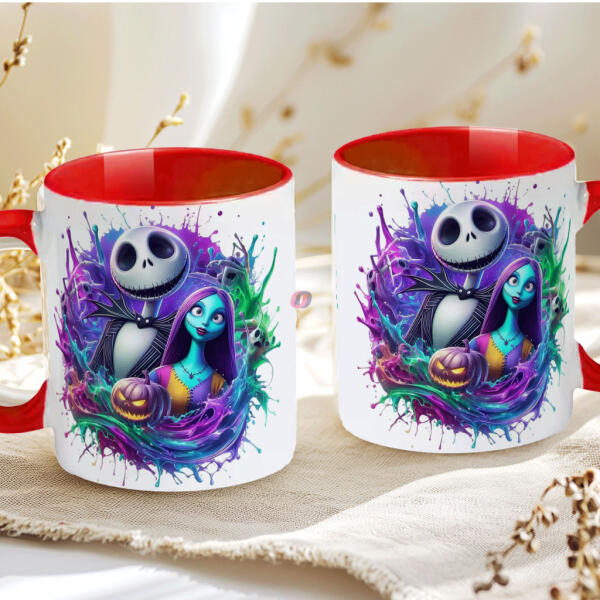 Halloween mintás bögre "Jack and Sally" red