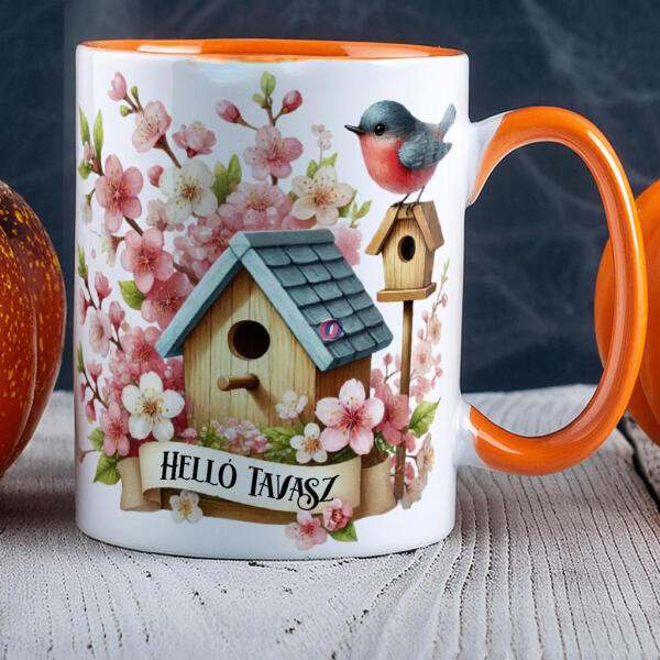 Húsvéti bögre "Helló Tavasz" egyedi felirattal, narancssárga, kerámia kedvező áron, villámgyors szállítással!