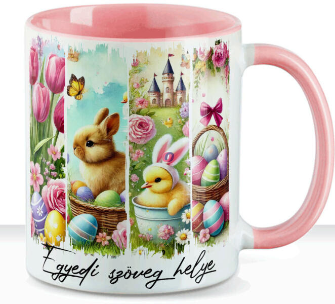 Deconline Crafts Húsvéti bögre "Retro Húsvét" egyedi felirattal, rózsaszín, kerámia (DO133003-PINK-MUG)