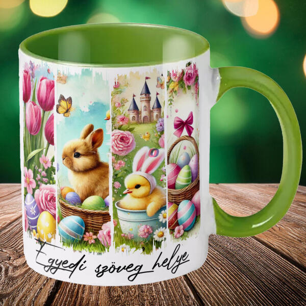 Deconline Crafts Húsvéti bögre "Retro Húsvét" egyedi felirattal, zöld, kerámia (DO133003-GREEN-MUG)