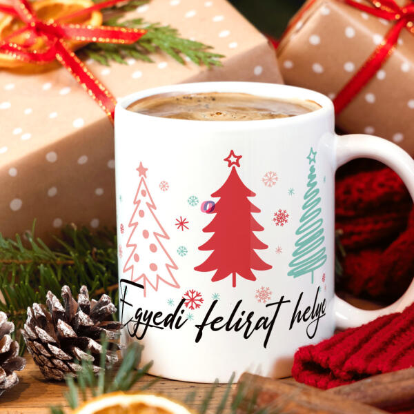 • Karácsonyi bögre Fenyőfás, egyedi szöveggel 330 ml