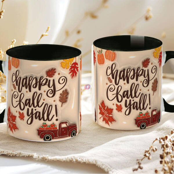Deconline Crafts Őszi mintás bögre 3D pufi hatású "Hello Fall Y'all" fekete (DO126104-BLACK-MUG)