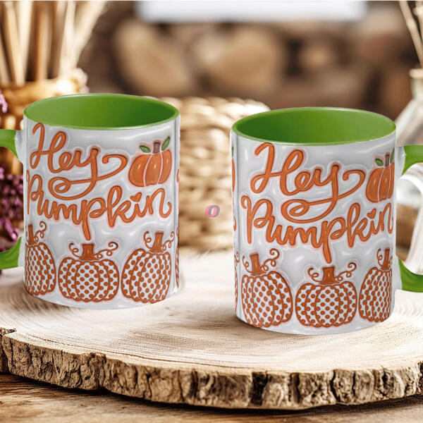 Deconline Crafts Őszi mintás bögre 3D pufi hatású "Hey Pumpkin" zöld (DO126110-GREEN-MUG)