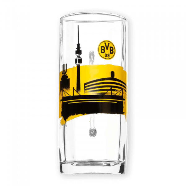 Dortmund söröskorsó mintával . Anyaga: üveg. BVB mintával ellátott bögre. Mosogatógépben nem mosható. Űrtartalom: 0,5 L. Eredeti Licenszes termék egyenesen Németországból.