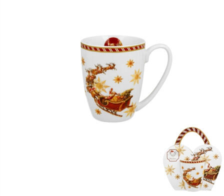 A(z) Porcelánbögre 360ml, díszcsomagolásban, Santa on Sleigh egy stílusos és igényes darab porcelán anyagból készült . A termék a(z) Duo Gift márka kínálatából származik , eredeti származási helye: Lengyelország.