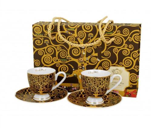 Duo Gift Porceláncsésze+alj, 90ml, Golden Line, 2 személyes, dobozban, Klimt: Életfa