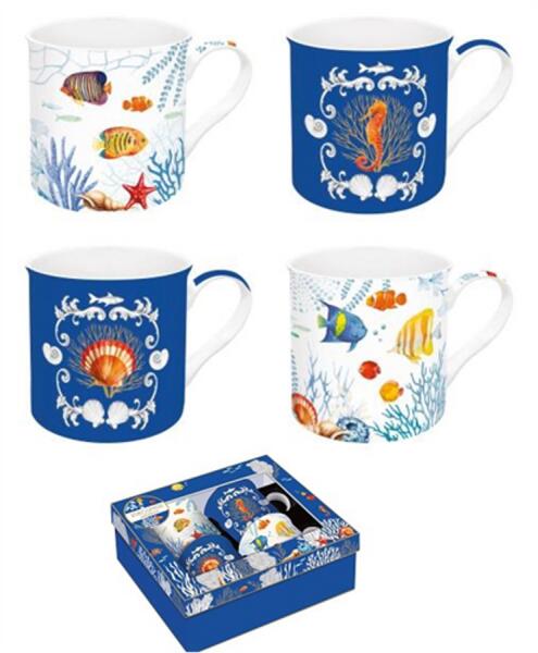 Easy Life Design Porcelán bögre 4db-os 300ml dobozban, Aquarium, Atmosphere