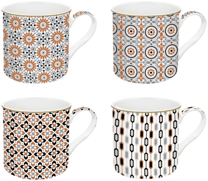 Válaszd a minőséget! Ajándéknak is kitűnő. Easy Life-Nuova Porcelán bögreszett 4 db-os, 300ml, dobozban, Atmosphere, Geoethnic