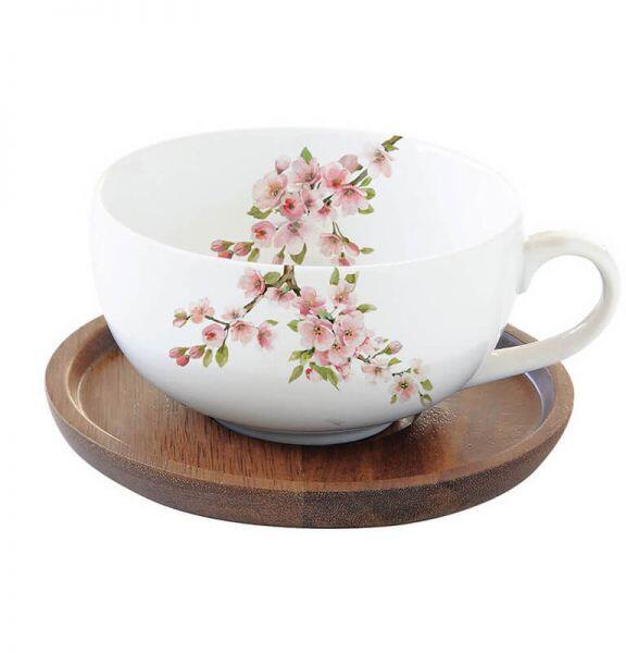 Easy Life Cseresznyevirágos porcelán csésze akácfa alátéttel - Sakura (VR-1082SAKU)