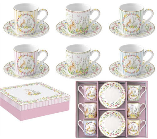 Easy Life Porcelán eszpresszócsésze+alj 6 személyes, 100ml, dobozban, Coffee Mania, Happy Easter (126EAST)