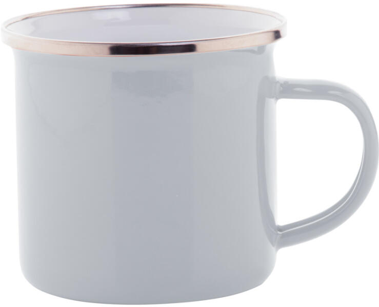 Vintage, fém zománcozott bögre rozsdamentes acél peremmel, 300 ml.