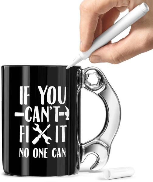 Végre megérkezett a FIXIT bögréje az otthoni hősödhöz. Apa mindent megjavít ugye? Lepd meg ezzel a remek ajándékkal! Ráadásul személyre szabhatod ezt a bögrét a saját szövegeddel vagy akár egy rajzzal is, mivel a szett tartalmaz egy fehér tollat, amivel írhatsz a bögrére. A bögrén lévő felirat: HA TE NEM TUDOD MEGJAVÍTANI, AKKOR SENKI SEM TUDJA, írhatod például "APA JÓZSI", "APU" vagy egyszerűen a saját hősöd nevét, és a másik oldalon rajzolhatsz egy szívet vagy virágot, vagy akár helyezhetsz el egy kissé hosszabb szöveget is. Egy ilyen személyre szabott bögre kétségkívül elnyeri a megajándékozott szívét. A fehér toll tintája könnyedén törölhető, így a bögrét többször is át lehet írni! A termék tulajdonságai: