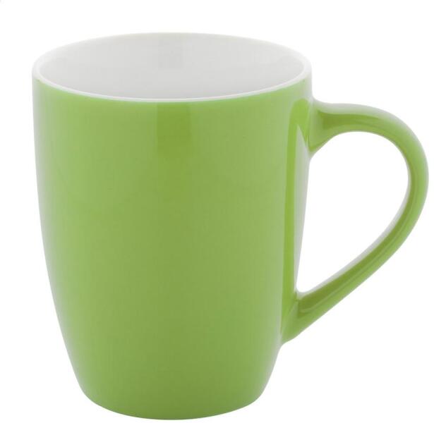 Magas minőségű színes kerámia bögre fehér belső résszel, 340 ml. Kraft papír dobozban szállítjuk.