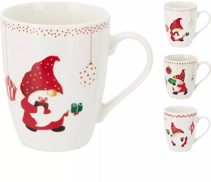 Praktikus és dekoratív bögre kiváló minőségű porcelánból, vidám Manó mintákkal. Tökéletes tea, kávé vagy forró csokoládé fogyasztására. Ünnepi hangulatot teremt, valamint ajándéknak is ideális.